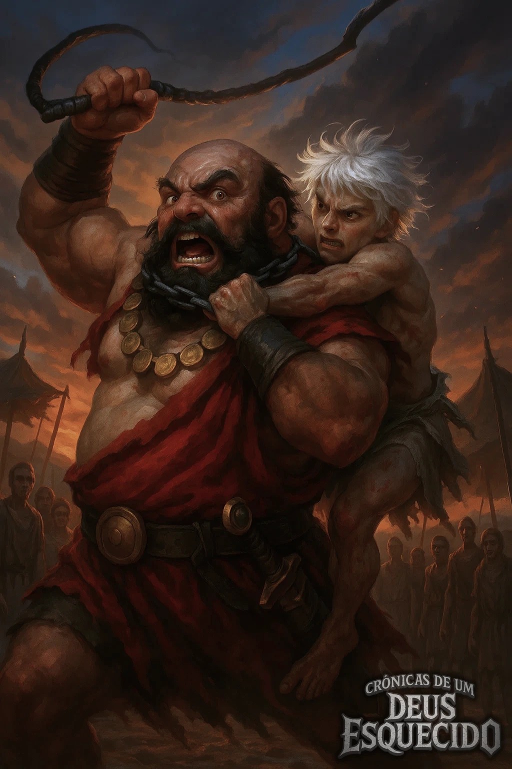 O desespero o paralisou mais do que a dor. Ele se encolheu no chão, reduzido, impotente, enquanto o couro estalava contra suas costas, abrindo a pele, misturando sangue novo com a água suja do balde.