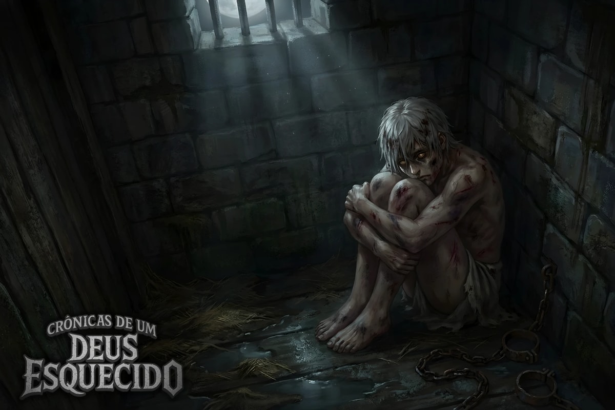 Hermes estava encolhido no canto da cela. O chão era frio e pegajoso. O cheiro de urina e sangue seco impregnava o ar, embrulhando seu estômago. Abraçava os próprios joelhos, tentando conservar o pouco calor que lhe restava. Seus cabelos brancos estavam opacos e grudados na testa pelo suor e pela lama.